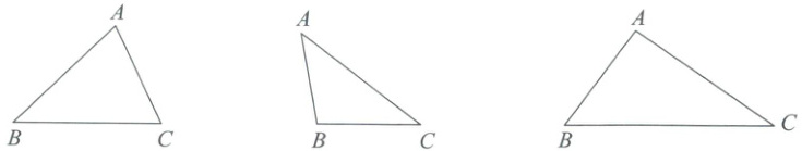 17. 如图,分别画出每个三角形过顶点A的中线、角平分线和高线。