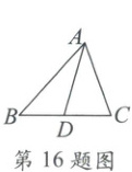 16. 如图,D为△ABC的边BC的中点。若$S_{△ADC}$ = 15,则$S_{△ABC}$ =