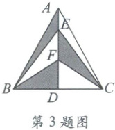 3. 如图,AD所在直线是△ABC的对称轴,E,F是AD上的两点。若BD = 3,AD = 6,则图中阴影部分的面积是