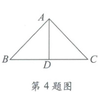 4. 如图,在△ABC中,AB = AC,AD是BC边的中线。若AB = 5,BC = 6,则AD的长为