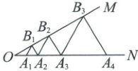 10. 如图,已知∠MON = 30°,点A₁,A₂,A₃,…在射线ON上,点B₁,B₂,B₃,…在射线OM上,△A₁B₁A₂,△A₂B₂A₃,△A₃B₃A₄,…均为等边三角形。若OA₁ = 1,则△A₆B₆A₇的边长为(