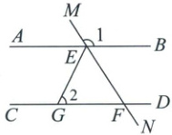 ∴∠MFD=∠1=122°,∠MFD=∠AEF,∠2=∠AEG。