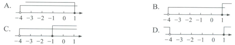4. 解不等式组$\begin{cases}7x - 8 < 9x,①\frac{x + 1}{2} \leq x②\end{cases}$时,不等式①②的解集在同一条数轴上表示正确的是(