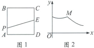 10. 如图1,正方形$ABCD$的边长为4,$E$为$CD$边的中点。动点$P$从点$A$出发沿$AB→BC$匀速运动,运动到点$C$时停止。设点$P$的运动路程为$x$,线段$PE$的长为$y$,$y$与$x$的函数图象如图2所示,则点$M$的坐标为(