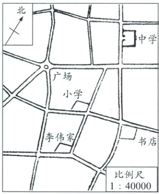 (2)若李伟家到中学门口的直线实地距离为 1400 米,则其图上距离为