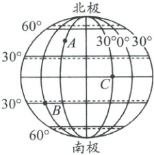 2. 图中C点所在的纬线长度大约是(