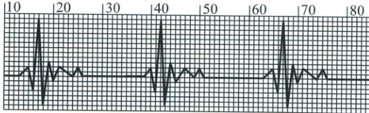 19. 某人在医院做了一次心电图,结果如下图。如果心电图仪卷动纸带的速度为 1.5 m/min,图中方格纸每小格长 1 mm,则此人的心率为(