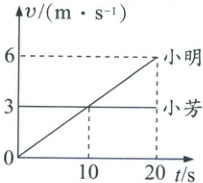 20. 周日做完作业,小明和小芳同学在风景如画的柳叶湖畔骑自行车,右图是他们在某段路面上的速度随时间变化的图像。下列分析中错误的是(