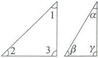 (2)用量角器量出图中各个角的度数,分别是∠1=∠2=45°,∠3=90°,∠α=30°,∠β=60°,∠γ=90°。把它们按从小到大排列为∠α<∠1=∠2<∠β<∠3=∠γ。