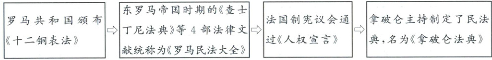 论述:《十二铜表法》是罗马法制建设的第一步,是后世罗马法典乃至欧洲法学的渊源;《罗马民法大全》奠定了欧洲民法的基础;法国《人权宣言》宣告了人权、法治、平等和保护私有财产等基本原则;《拿破仑法典》成为很多国家民法的参照蓝本。