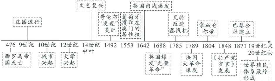 32. (14分)阅读西欧发展的时间轴,回答问题。
