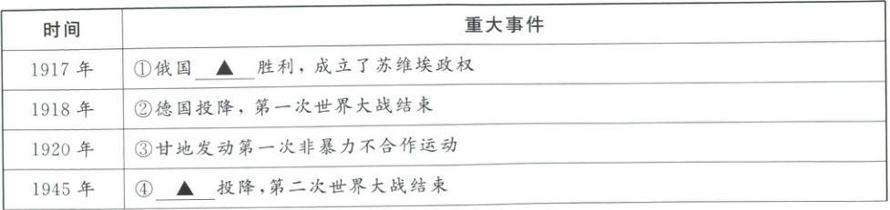 (1)十月革命;日本。(每点1分,共2分)