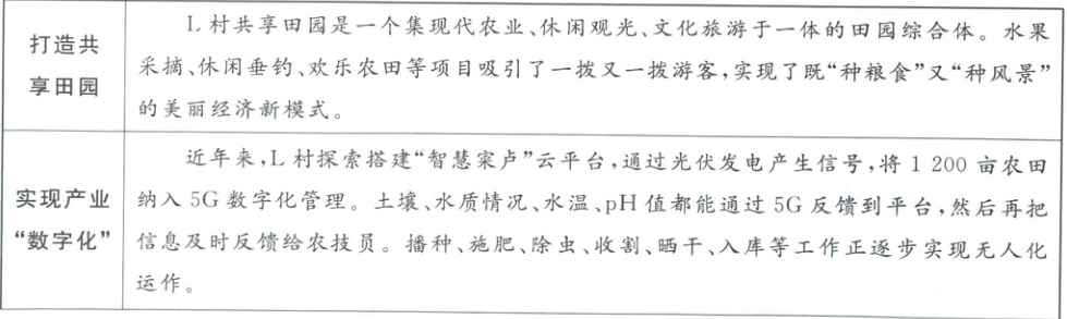 (1)L 村发展所取得的成就体现了我国哪些新发展理念? (3 分)