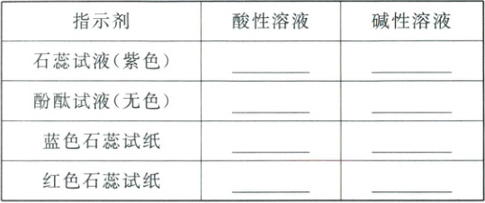 (1)酸性或碱性溶液与指示剂作用时,变色的是指示剂,并不是酸性或碱性溶液,故不能说指示剂(石蕊或酚酞)使酸性或碱性溶液变色(或酸性、碱性溶液遇指示剂变色)。酸碱指示剂与酸性或碱性溶液的反应属于