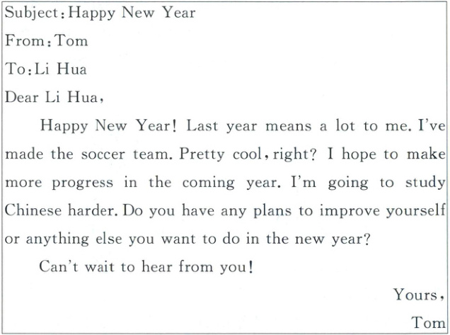 76. 假设你是李华,收到了来自英国笔友 Tom 的问候,请结合邮件的内容给你的笔友回复一封邮件。