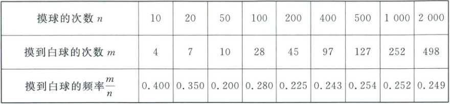 (1)根据题意,得大量重复试验下,摸到白球的频率稳定在0.25附近,摸到白球的概率的估计值是0.25.故答案为0.25.