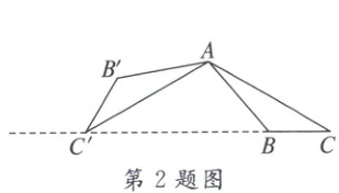 2. 如图,将△ABC绕点A顺时针旋转120°得到△AB'C',若点C,B,C'共线,则∠ACB的度数为(