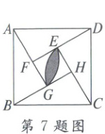 7. 在如图所示的“赵爽弦图”中,它是由四个全等的直角三角形与中间的小正方形EFGH拼成的大正方形ABCD,分别以点F,H为圆心,EF长为半径作弧,若AB=5,E为DF的中点,则图中阴影部分的面积为(