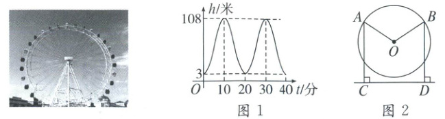 (3)如图2,摩天轮某个吊舱从点A旋转到点B需6分钟,那么请你求出这个吊舱从点A顺时针旋转到点B所走的路径的长度。(结果保留π)