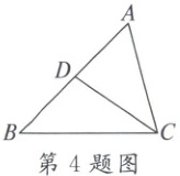 4. 如图,$D$是$\triangle ABC$的边$AB$上的一点,那么下列四个条件不能单独判定$\triangle ABC \backsim \triangle ACD$的是(