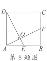 8. 如图,正方形$ABCD$中,$E$为$AB$的中点,$AF \perp DE$于点$O$,则$\frac{AO}{DO}$等于(