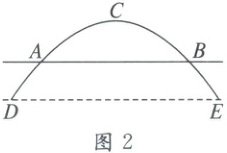 14. 如图1是一座抛物线形拱桥,图2是其示意图,桥拱与水平桥面相交于$A$,$B$两点,桥拱最高点$C$到$AB$的距离为$9m$,$AB=36m$,$D$,$E$为桥拱底部的两点,且$DE// AB$,点$E$到直线$AB$的距离为$7m$,则$DE$的长为