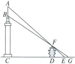 22. 如图,建筑物$BC$上有一根旗杆$AB$,小芳计划测量该建筑物的高度;方法如下:在该建筑物底部所在的平地上有一棵小树$FD$,小芳沿$CD$后退,发现地面上的点$E$、树顶$F$、旗杆顶端$A$恰好在一条直线上,继续后退,发现地面上的点$G$、树顶$F$、建筑物顶端$B$恰好在一条直线上,已知旗杆$AB = 3$米,$FD = 4$米,$DE = 5$米,$EG = 1.5$米,点$A$,$B$,$C$在一条直线上,点$C$,$D$,$E$,$G$在一条直线上,$AC$,$FD$均垂直于$CG$,请你帮助小芳求出这座建筑物的高$BC$。