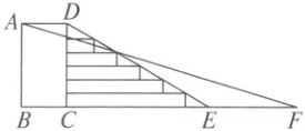 10. 为了学生的安全,某校决定把一段如图所示的步梯路段进行改造。已知四边形$ABCD$为矩形,$DE = 10m$,其坡度为$i_1 = 1 : \sqrt{3}$,将步梯$DE$改造为斜坡$AF$,其坡度为$i_2 = 1 : 4$,则斜坡$AF$的长度是