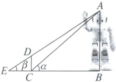11. 某商场引进消毒机器人每天进行全场消毒工作,该机器人采取精准直线喷射技术,实现了准确、快速和节约的目标。在设置参数的时候,工作人员通过对商场门口身形高大的“大黄蜂”进行多次消毒试验发现:如图,若对$A$点进行消毒,适当调整机器人$CD$到$AB$的距离,使得$\sin (\alpha - \beta)$的值尽可能的大,能提高消毒的效率。已知“大黄蜂”$AB$身高2.5米,机器人$CD$高0.4米。则当$\sin (\alpha - \beta)$最大时,机器人$CD$和“大黄蜂”$AB$之间距离$BC$等于