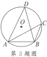 3. 如图,$ AB $ 是 $ \odot O $ 的弦,点 $ C $,$ D $ 都在 $ \odot O $ 上,若 $ \angle ACB = 40° $,则 $ \angle ADB = $( )