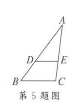 5.D 解析:$\because DE// BC$,$DE=2k$,$BC=3k$,$\therefore\triangle ADE\backsim\triangle ABC$,$\therefore\frac{AD}{AB}=\frac{DE}{BC}=\frac{2k}{3k}=\frac{2}{3}$.