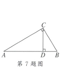 7.A 解析:由题知,$\because\angle ACB=90^{\circ}$,$CD$是$AB$边上的高线,$\therefore\angle A+\angle ACD=\angle ACD+\angle BCD=90^{\circ}$,$\therefore\angle A=\angle BCD$.