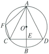 20. (8分)如图,已知 $ \odot O $ 的半径为2,弦 $ CD \perp $ 直径 $ AB $,垂足为 $ E $,点 $ F $ 在 $ \overset{\frown}{AC} $ 上(不与点 $ A $,$ C $ 重合),连结 $ AF $,$ AC $,$ AD $,$ FC $。