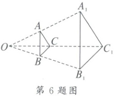 6. 如图,$\triangle ABC$与$\triangle A_{1}B_{1}C_{1}$是位似图形,位似中心为点$O$。若$\triangle ABC$的面积为$40 cm^{2}$,$OB:BB_{1}=2:3$,则$\triangle A_{1}B_{1}C_{1}$的面积是(