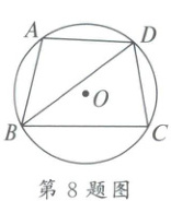 8. 在圆内接四边形$ABCD$中,$AB = AD$,$BD$是对角线,$\angle ABD = 40^{\circ}$,则$\angle C$的度数是(