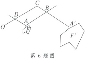 6. 一把放缩尺如图所示,当画笔 A 沿图形 F 运动时,画笔$A'$随之画出放大后的位似图形$F'$.若相似比为$1:3$,图形 F 的周长是 4,则图形$F'$的周长是(