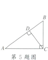 5. 如图,在 $Rt\triangle ABC$ 中,$\angle ACB = 90^{\circ}$,$AB = 10$,$AC = 8$,$CD \perp AB$,则 $\sin\angle BCD$ 的值为(
