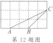 12. 如图,$\triangle ABC$ 的顶点都在方格纸的格点上,则 $\tan A =$