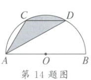 14. 如图,$C$,$D$ 是以 $AB$ 为直径的半圆周的三等分点,$CD = 6\ cm$,则阴影部分的面积是