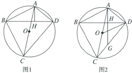 (2)如图 2,延长 $AH$ 交 $CD$ 于点 $G$,连结 $OD$,且 $OD // AB$。