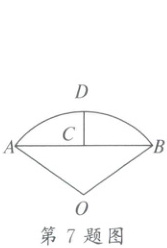 7. 沈括在《梦溪笔谈》中收录了计算圆弧长度的“会圆术”,主要思路是局部以直代曲,进行近似计算。如图,$ \overset{\frown}{AB} $ 是以 $ O $ 为圆心、$ OA $ 长为半径的圆弧,$ C $ 是弦 $ AB $ 的中点,$ D $ 是 $ \overset{\frown}{AB} $ 的中点,则 $ \overset{\frown}{AB} $ 长度的近似值 $ l = AB + \frac { C D ^ { 2 } } { O A } $。若 $ C D = 2 $,$ AB = 8 $,则 $ l = $(