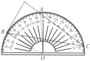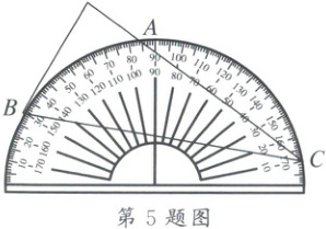 5. 将量角器按如图所示的方式放置在三角形纸板上,使点$C$在半圆上.点$A$,$B$的读数分别为$86^{\circ}$,$30^{\circ}$,则$\angle ACB$的大小为(