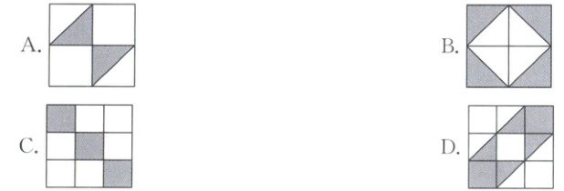 3. 分别向如图所示的四个区域随机掷一枚石子,石子落在阴影部分可能性最小的是(