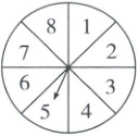 8. 国庆期间,某超市开展“有奖促销”活动,凡购物不少于 50 元的顾客均有一次转动转盘的机会. 如图,转盘被平均分为 8 等份,指针固定不动,转动转盘,转盘停止后,当指针指向数字 8 时,该顾客获一等奖;当指针指向 3 或 5 时,该顾客获二等奖;若指针指向分界线则重转. 顾客转动一次转盘,获一等奖或二等奖的可能性大小为