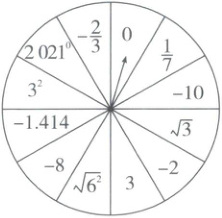 12. 如图是小亮设计的可以自由转动的转盘,转盘被等分成 12 个扇形,上面有 12 个实数. 若自由转动转盘,当它停止转动时,请解答下列问题: