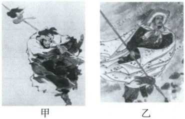 示例一:选甲。甲图描绘了人物迎风行走的画面,表情坚忍。林冲本是东京八十万禁军教头,因高衙内觊觎其妻,处处相逼,最后遭高俅陷害,刺配沧州。林冲在风雪山神庙之前一直选择忍让和妥协,对未来尚且存有幻想。甲图与林冲忍辱负重的性格吻合。 示例二:选乙。乙图描绘了人物在风雪中的侧影,表情落寞。林冲本是东京八十万禁军教头,因高衙内觊觎其妻,处处相逼,最后遭高俅陷害,刺配沧州。直到在山神庙得知陆谦等人受高俅指示要暗害他的性命后,才终于从隐忍走向反抗,手刃仇敌。他的命运充满悲凉色彩,与乙图的意境吻合。