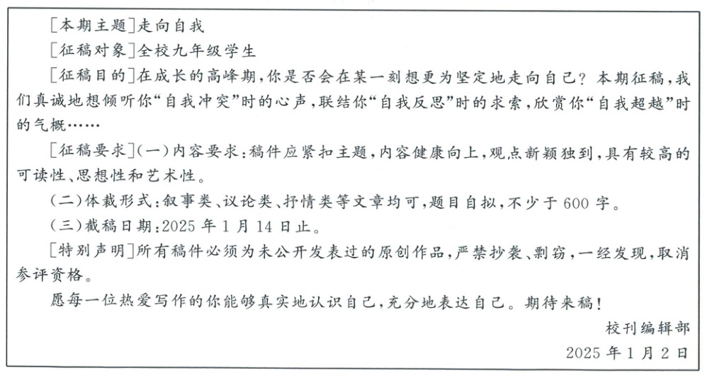 以下是校刊征稿启事,请你撰写文章参加征稿。