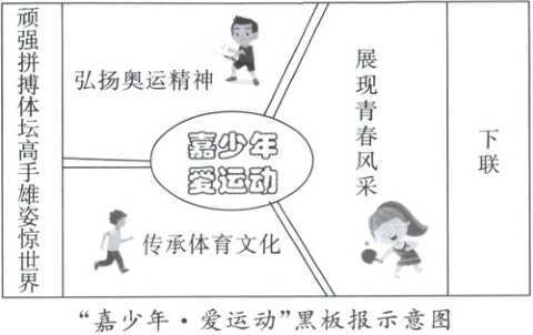 班级拟出一期题为“嘉少年·爱运动”的黑板报,小语同学设计了“弘扬奥运精神、传承体育文化、展现青春风采”等板块的初稿,请你参与并协助完成任务。