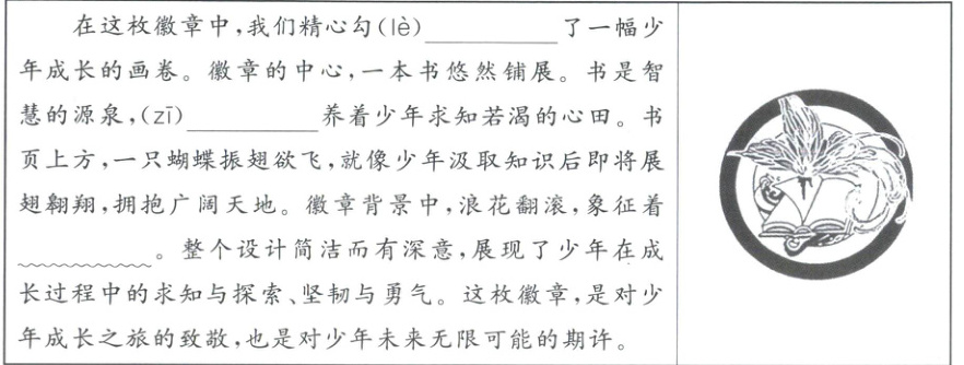 )养(2) 请在波浪线上补充徽章背景的设计意图。(2分)