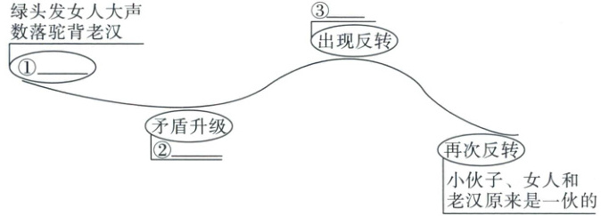 4. 根据小说内容,完成下面的思维导图,体会情节的一波三折。(3分)